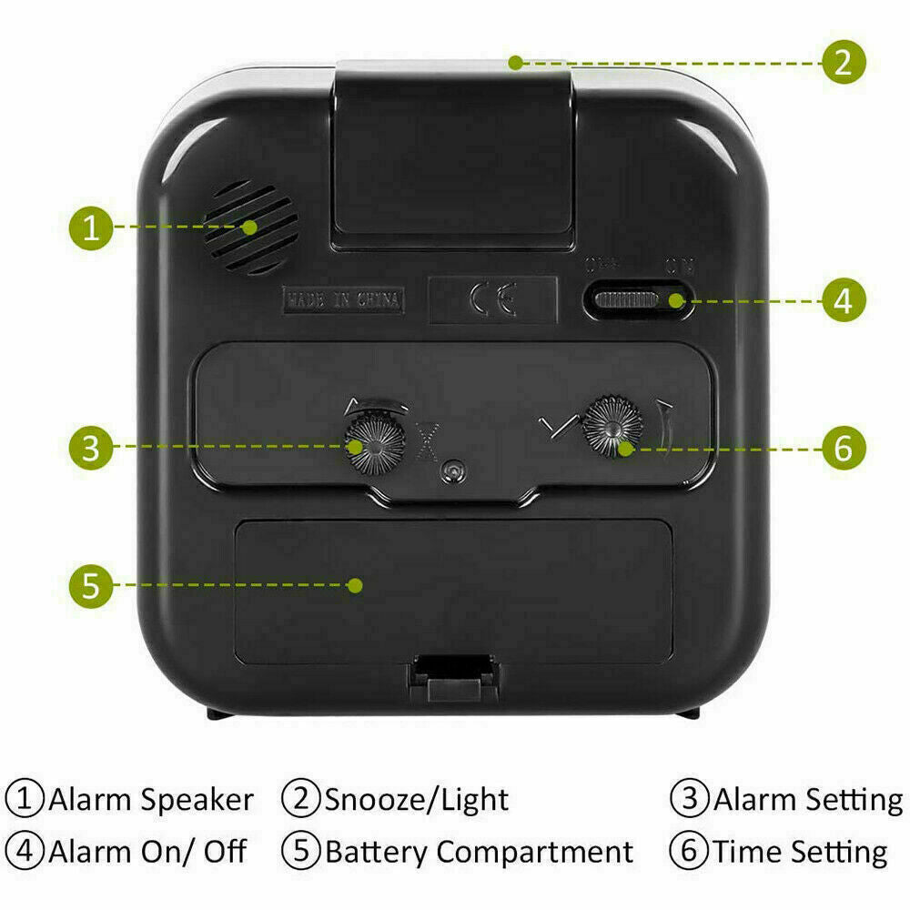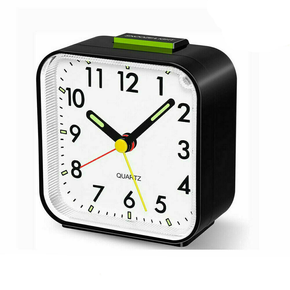 This square black alarm clock with quartz movement accuracy is super quiet so there’s no distracting ticking noises. Large bold numbers and luminous hands. Ideal as a travel alarm clock.