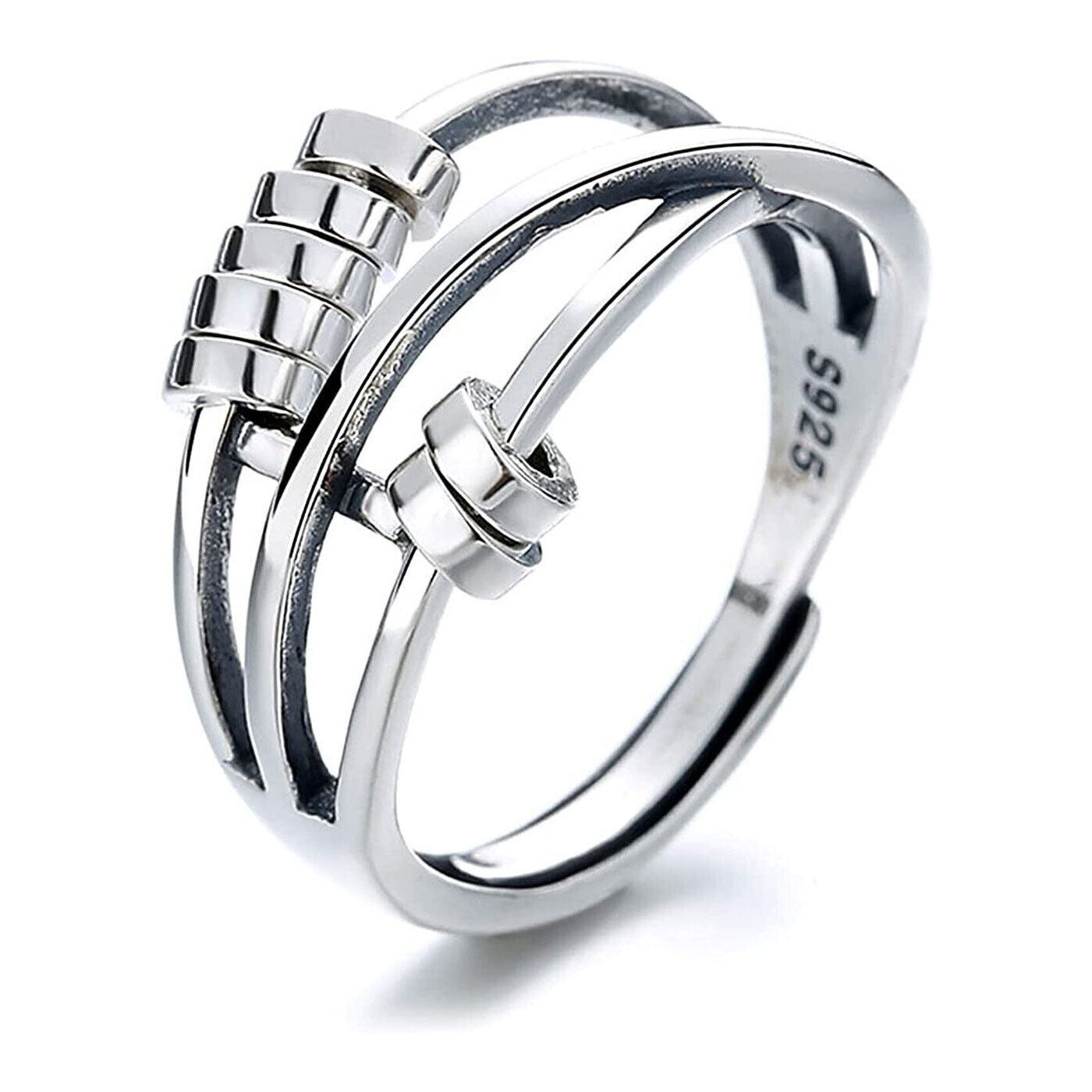 This silver spinner fidget ring has small loose beads great for discreetly fidgeting away and relieving extra energy or anxiety effectively.