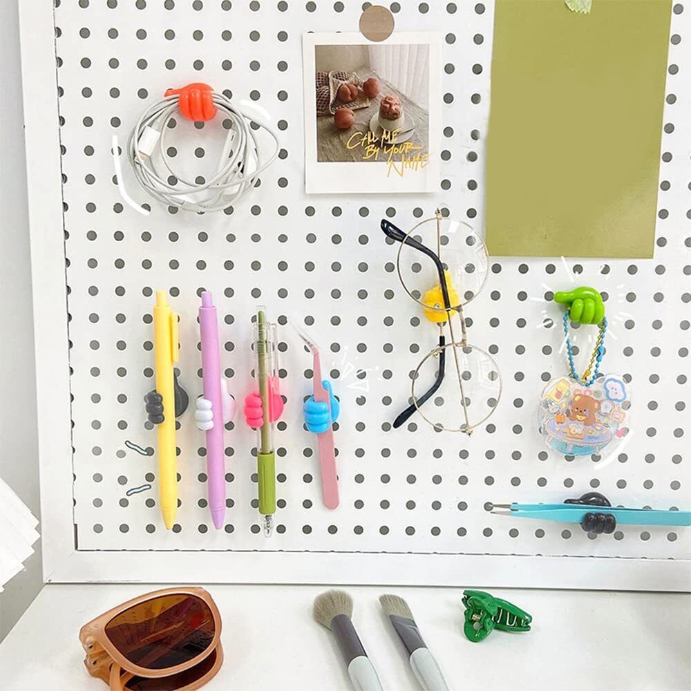 The little hand-shaped hooks are made of flexible plastic and is also great for tidying up cables and holding pens.