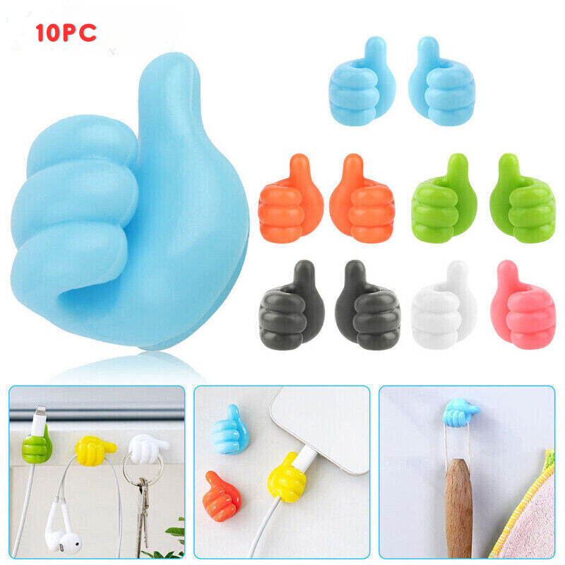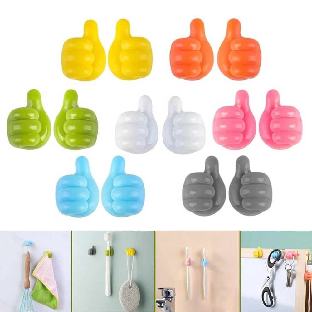 Thumbs Up Shape Key Holder Self Adhesive Wall Hooks Pack of 10