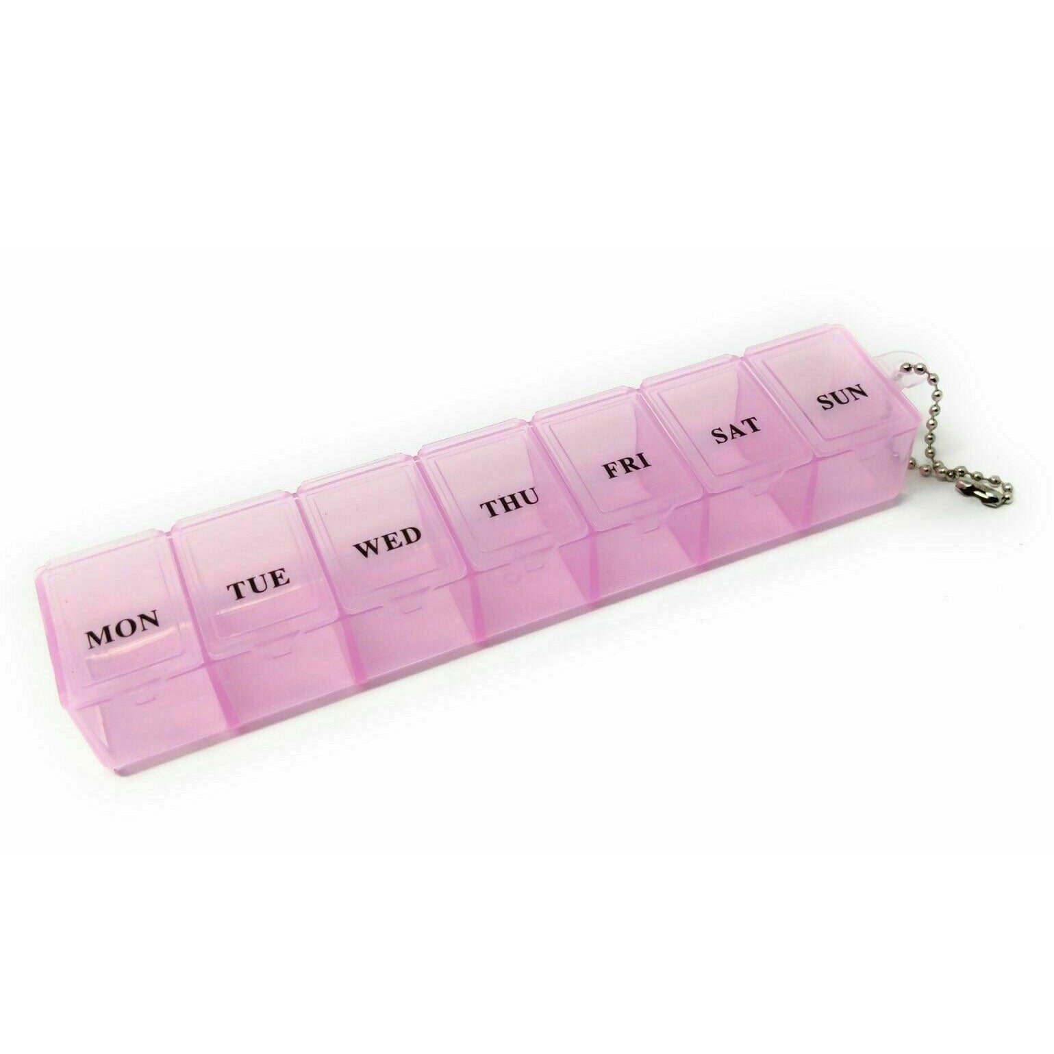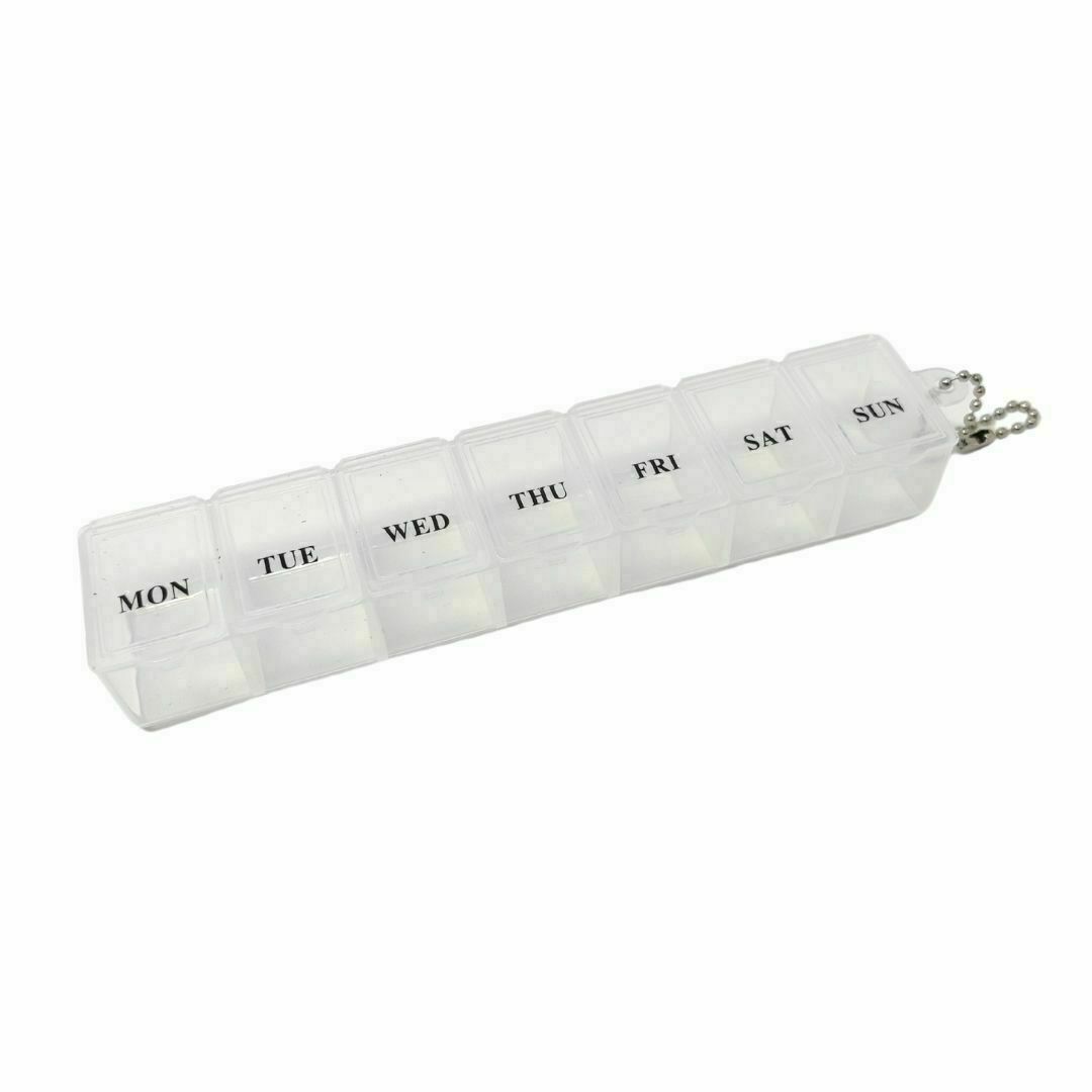 Clearly labelled for each day of the week for easy reference. The see-through design allows for a quick check to see if you've taken your medication. Plus, there's a convenient loop at one end for attaching it to a secure location.